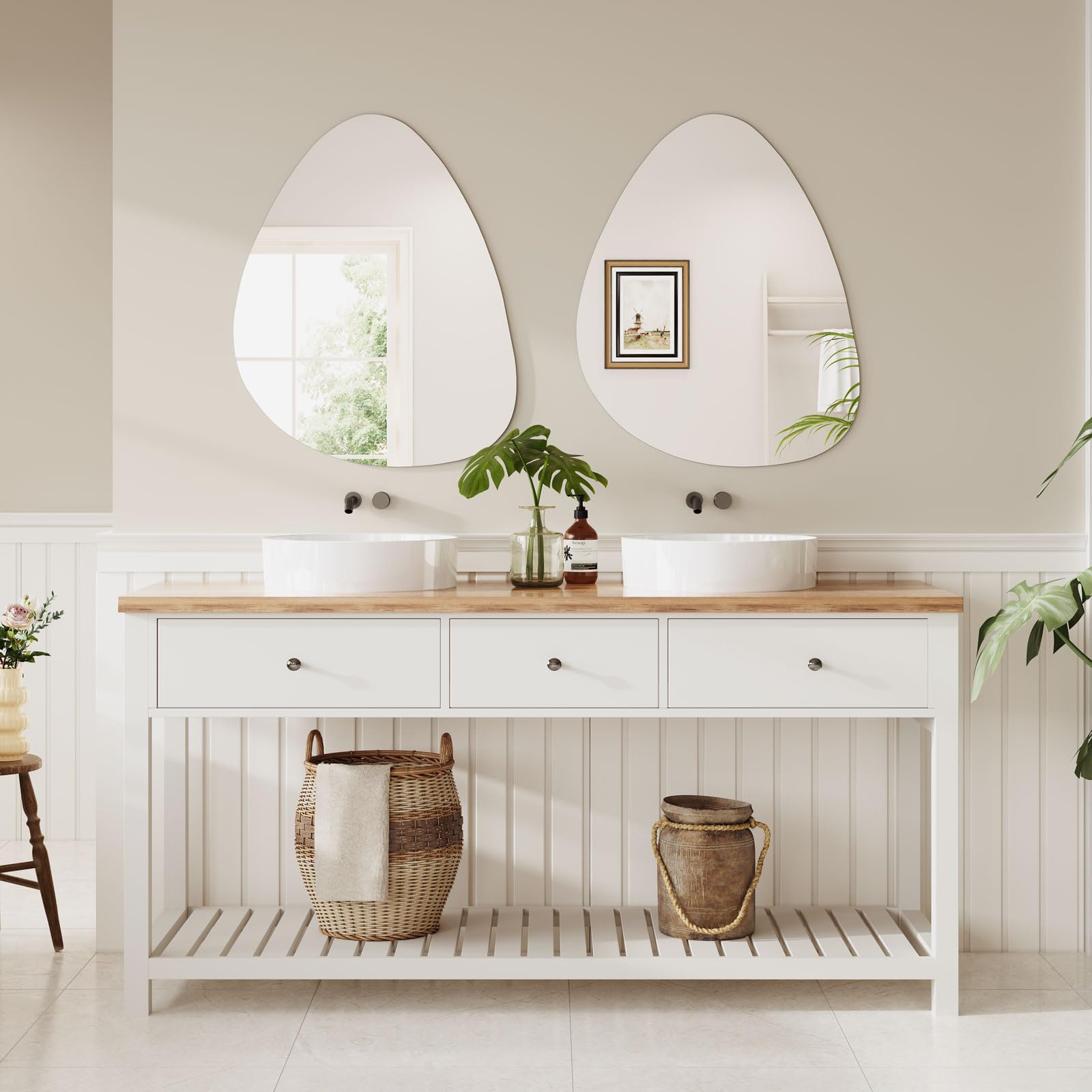 Dripex 65 x 50cm Frameless Hanging Mirror, Irregular Wall Mounted Mirror, Asymmetrical Home Decor for Bathroom Entryway Bedroom Living Room