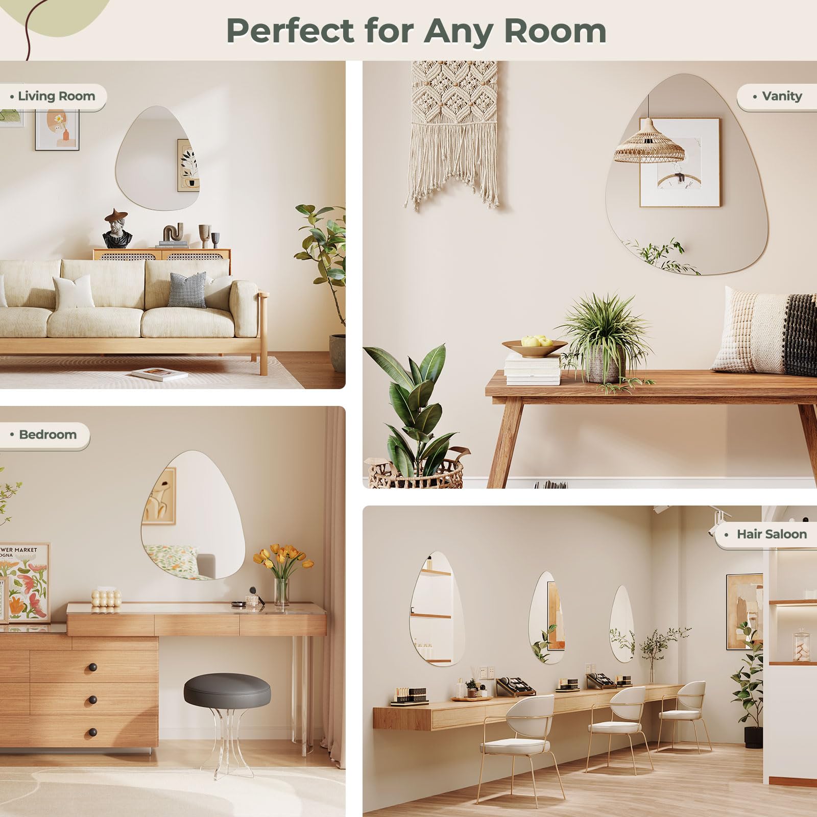 - Modern Teardrop Design (65x50cm): Unique frameless asymmetric silhouette creates a stylish focal point, complementing contemporary living rooms, bedrooms, or hallways