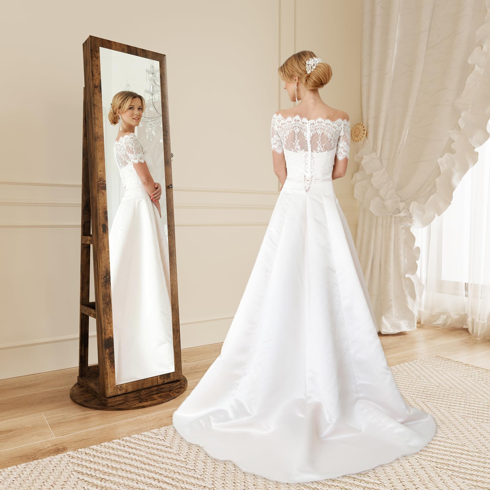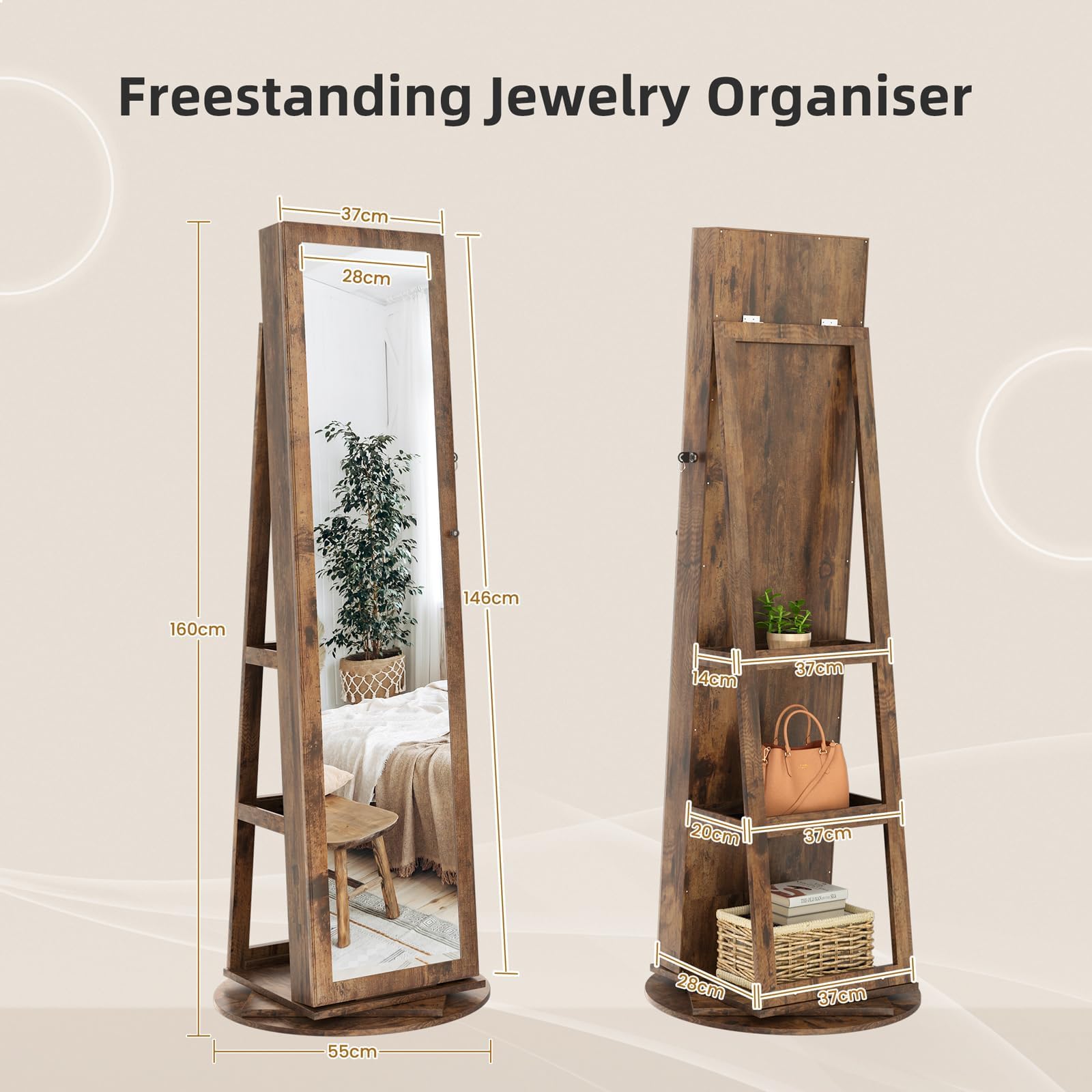 Dripex 360° Swivel Jewelry Storage Cabinet Mirror, 3 in 1 Lockable Jewellery Armoire with Storage Shelf, Free Standing Mirror Jewelry Organiser