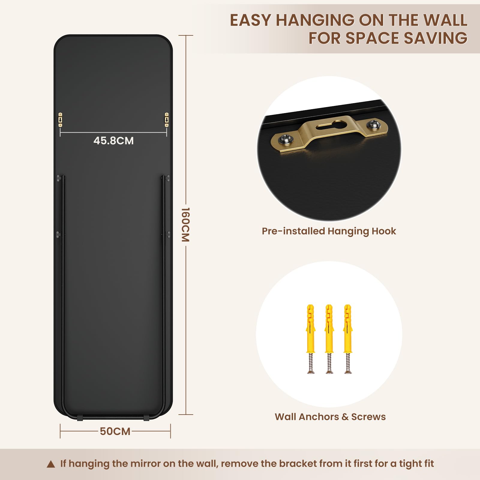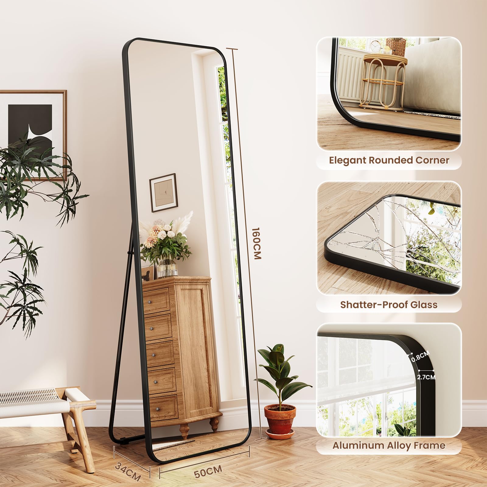 Dripex 160x50cm/ 150x40 Full Length Mirror Rounded Corners, Large Rectangular Floor Mirror with Stand, Freestanding Hanging or Leaning Against Walls for Living Room Bedroom & Hallway
