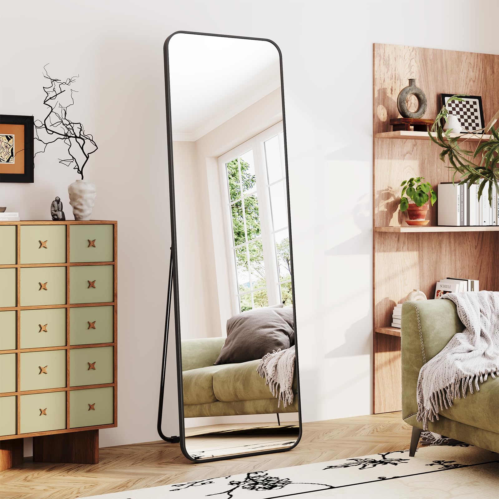 - Modern Durable Design: This floor mirror has a sleek, thin aluminum alloy frame with rounded corners for safety and style. Its back is sealed with medium-density fiberboard, ensuring both safety and longevity