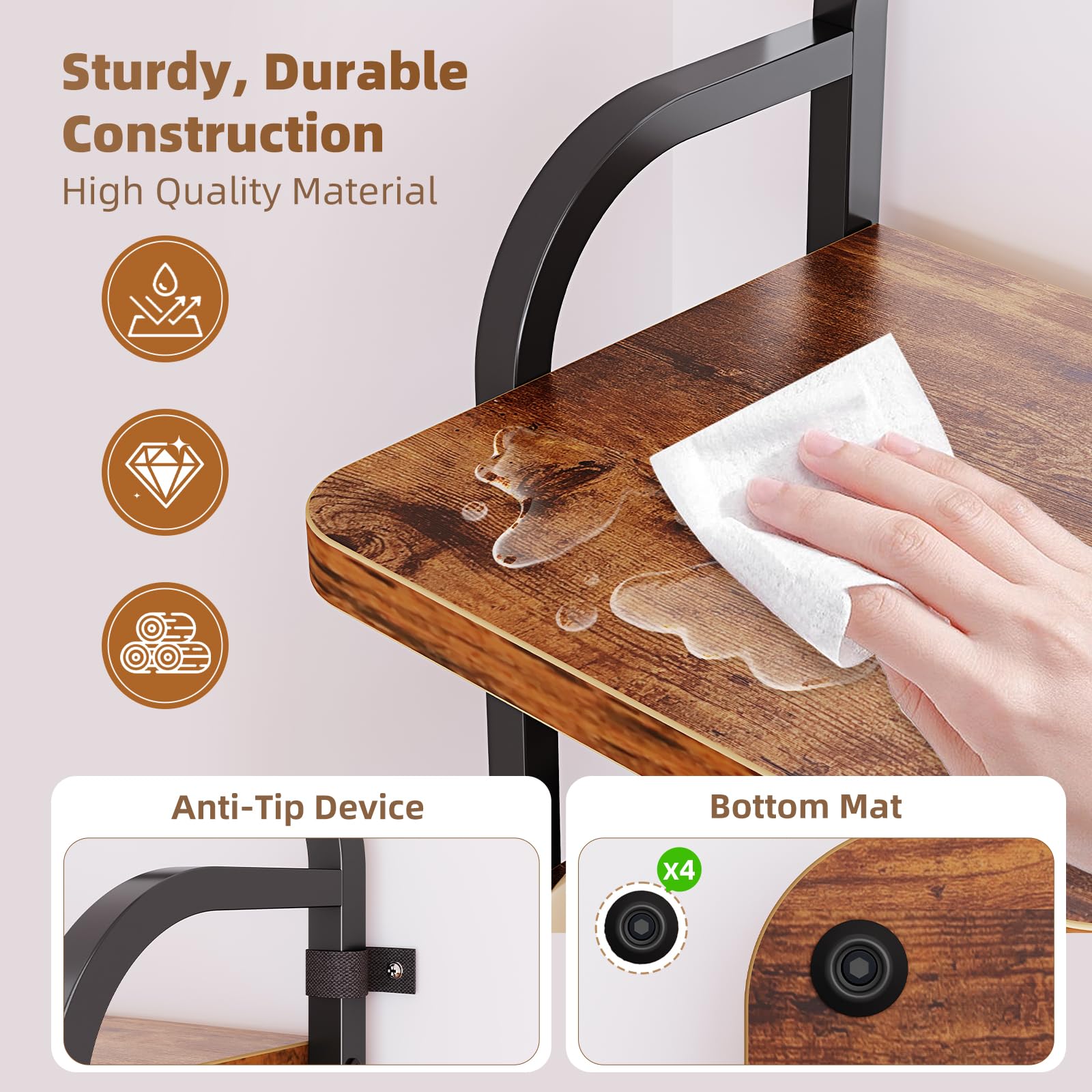 • Sturdy & Stable Construction: Built to last with high-density particle board and a robust metal frame. Each shelf supports up to 5 kg (11 lbs). Features a large base plate, included anti-tip kit, and non-slip, scratch-proof silicone feet for ultimate safety and floor protection.