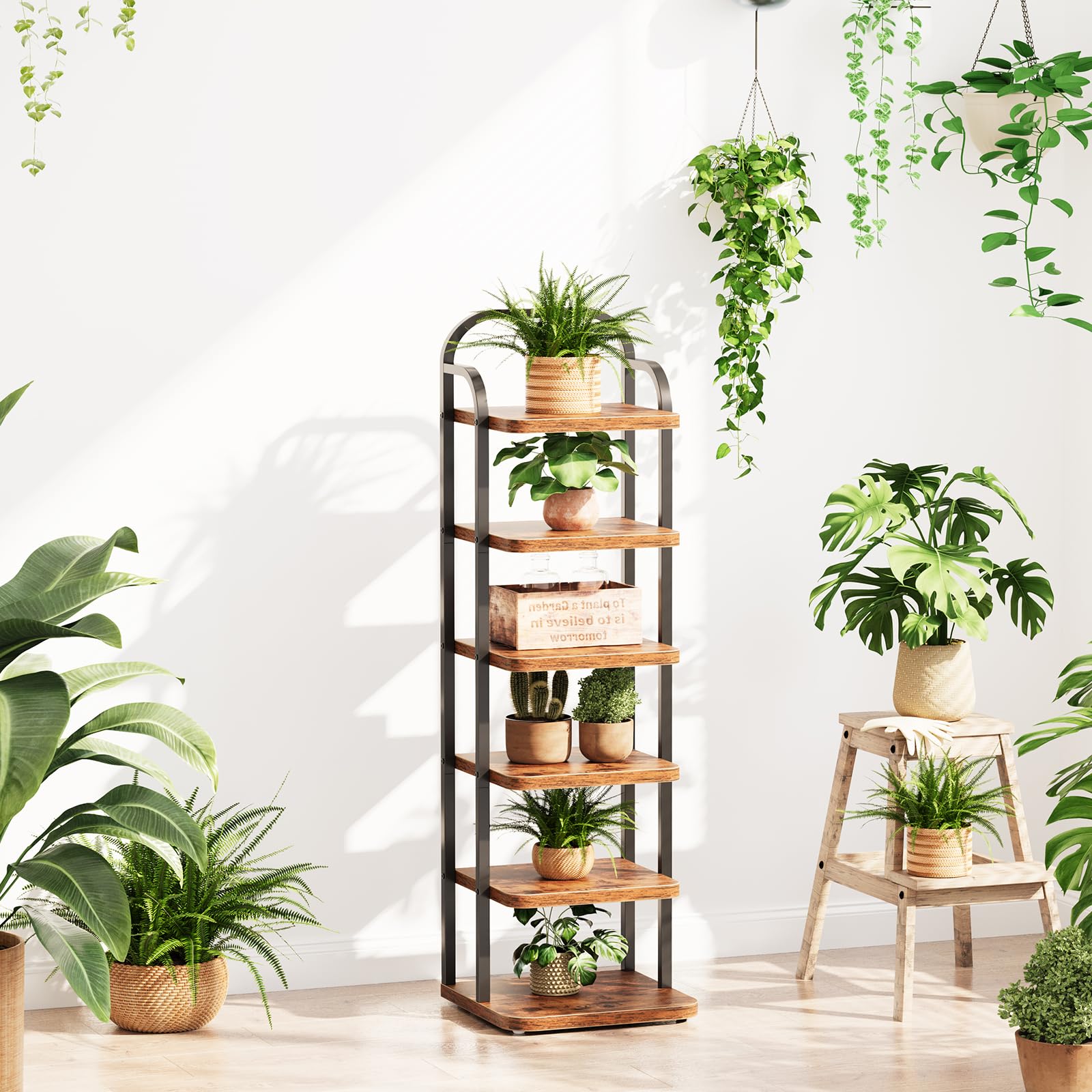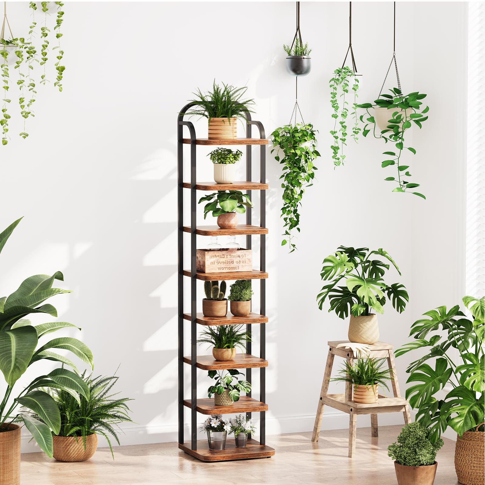Dripex Adjustable Narrow Shoe Rack Organizer, Space Saving Vertical Tall Shoe Shelf for6/8/ 10 Tier, Sturdy Multifunctional Entryway Hallway Living Room Storage Shelf Rustic Brown